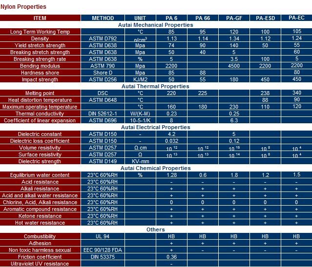 Acid and alkali resistance, corrosion resistance, high mechanical strength. High wear resistance, self lubrication, oil resistance, earthquake resistance, tensile and bending strength, and has small water absorption, good dimensional stability.